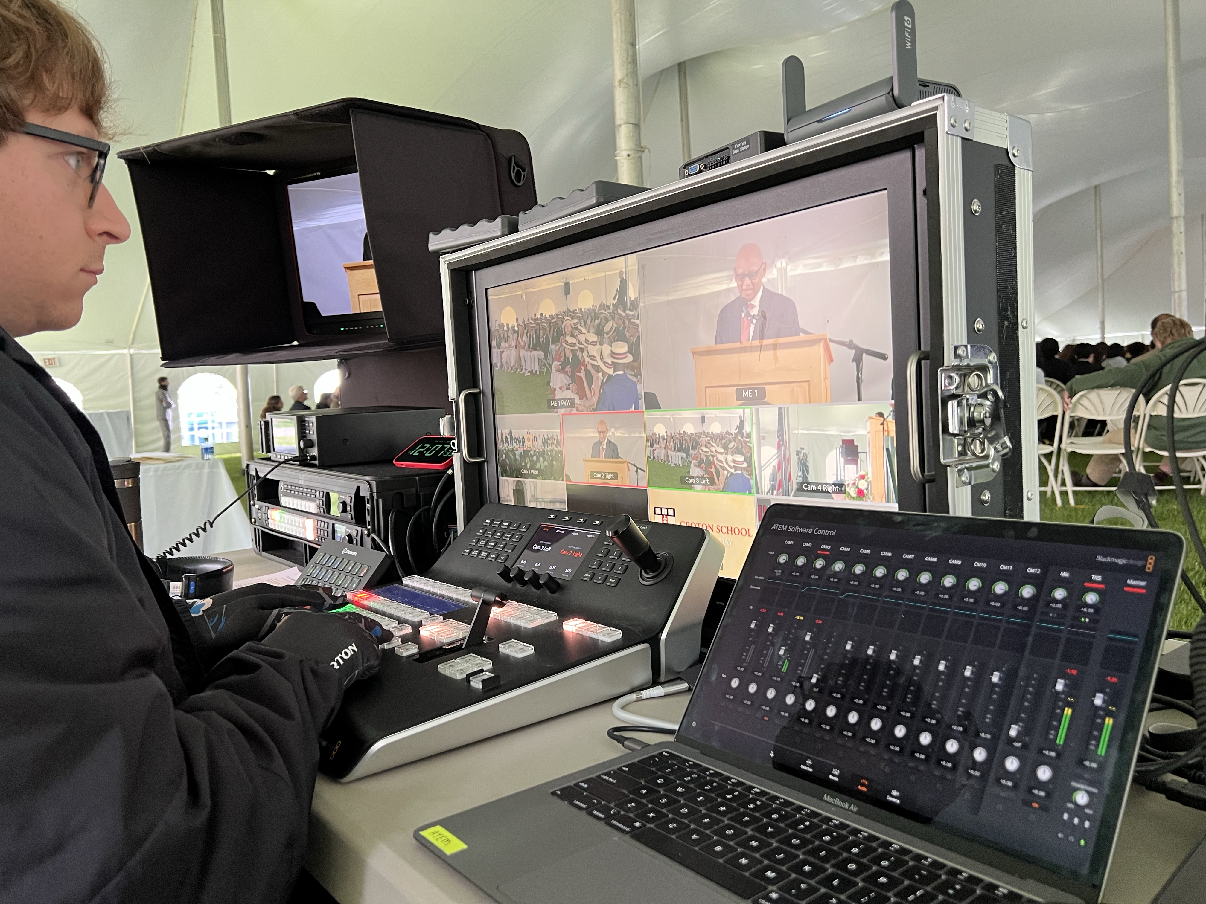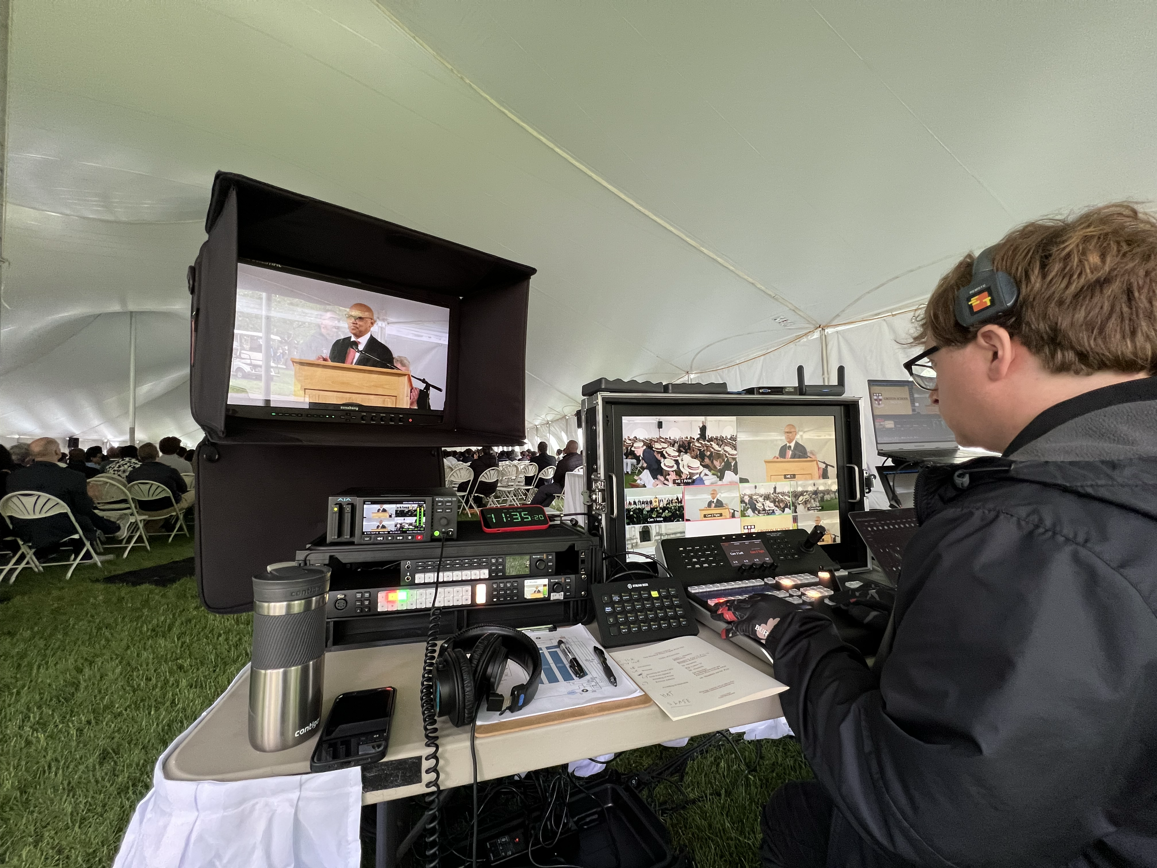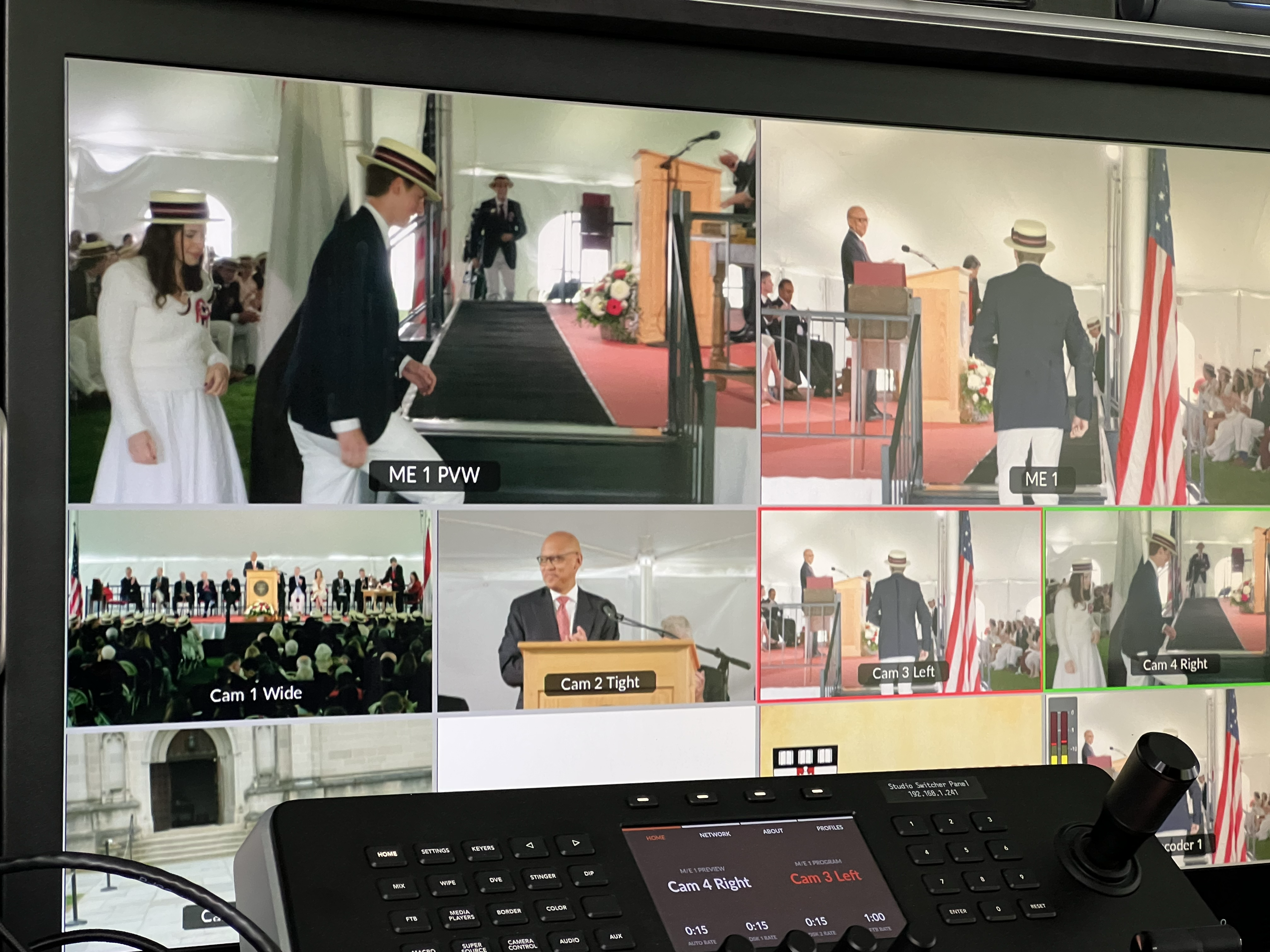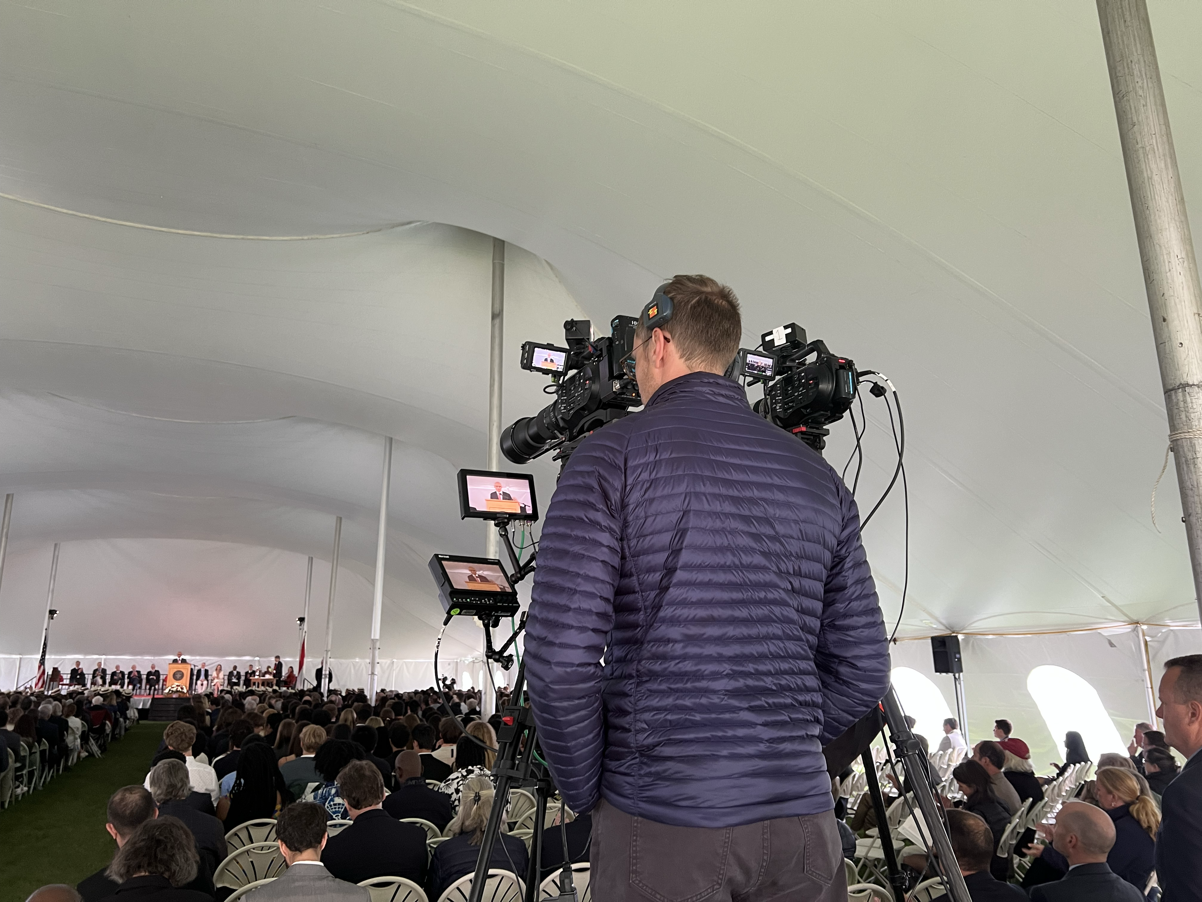 • One camera on each side of the stage that captured the audience and students walking across the stage