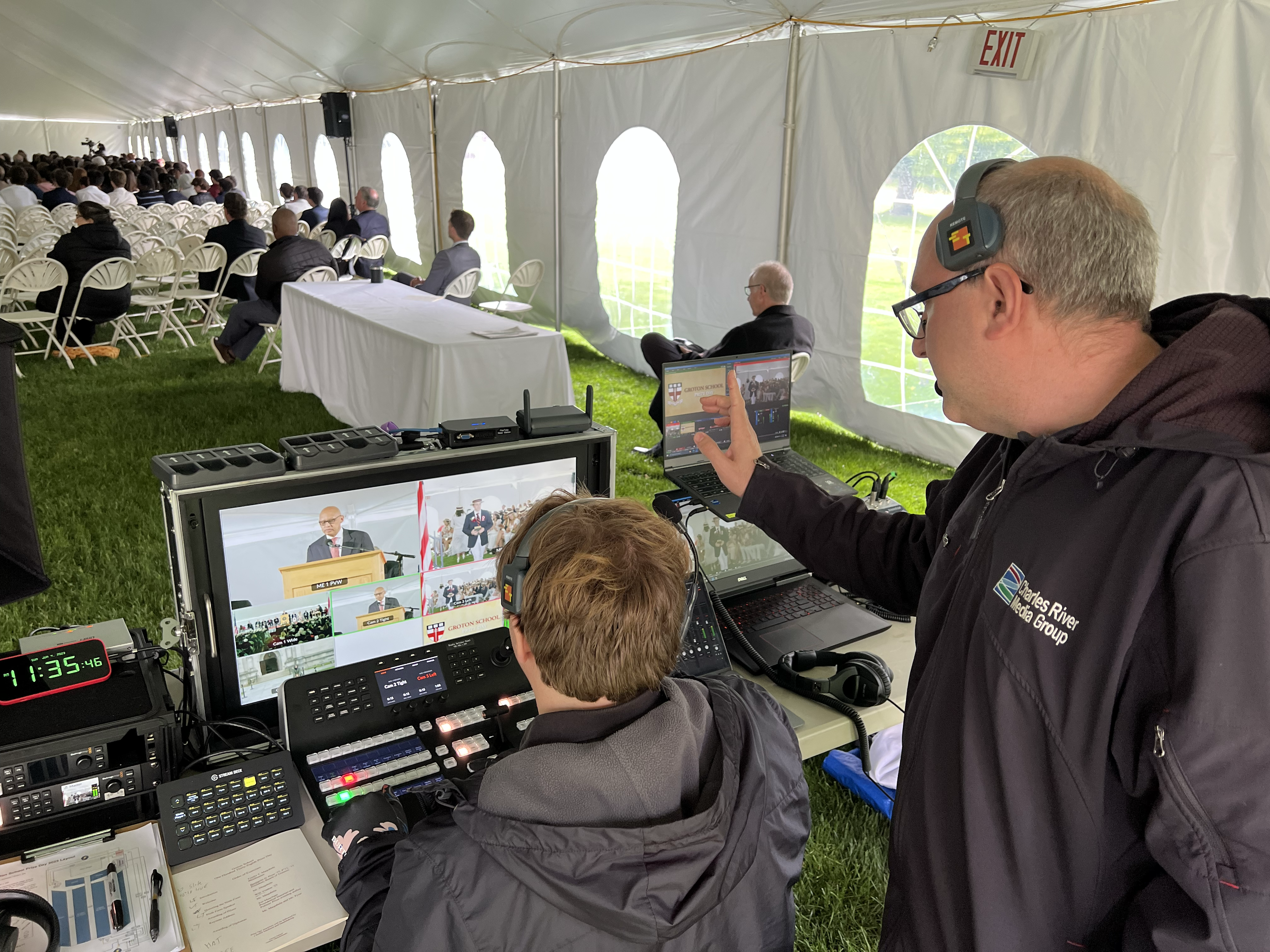 Charles River Media Group provided multi-camera live streaming services for the Groton School’s Prize Day commencement. The ceremony took place in a large tent on school grounds in front of their historic chapel where friends, family, and graduates gathered for the momentous occasion. The program included faculty speeches, student awards and diplomas, and remarks from guest speaker and Pulitzer Prize-winning historian Jon Meacham.