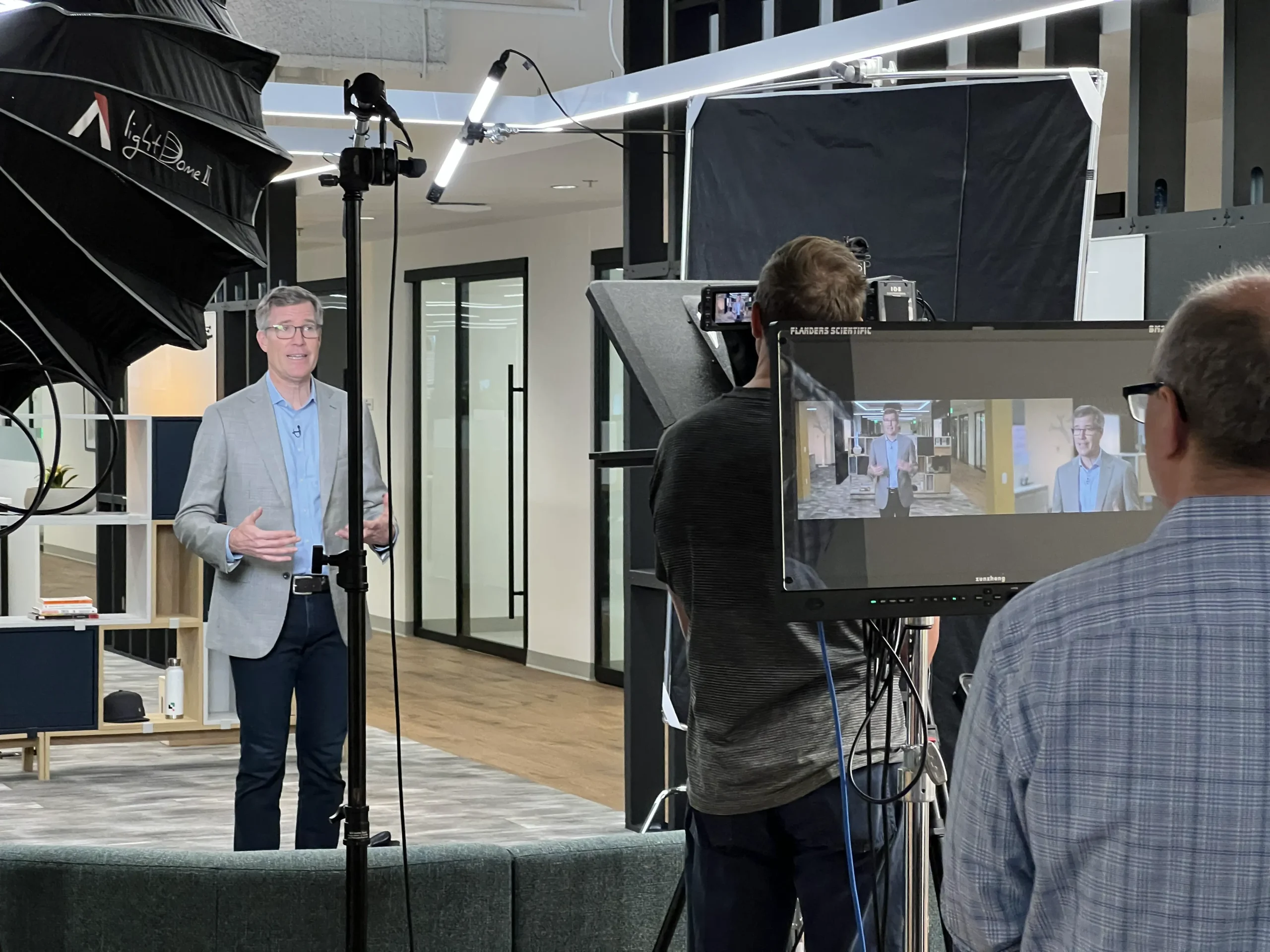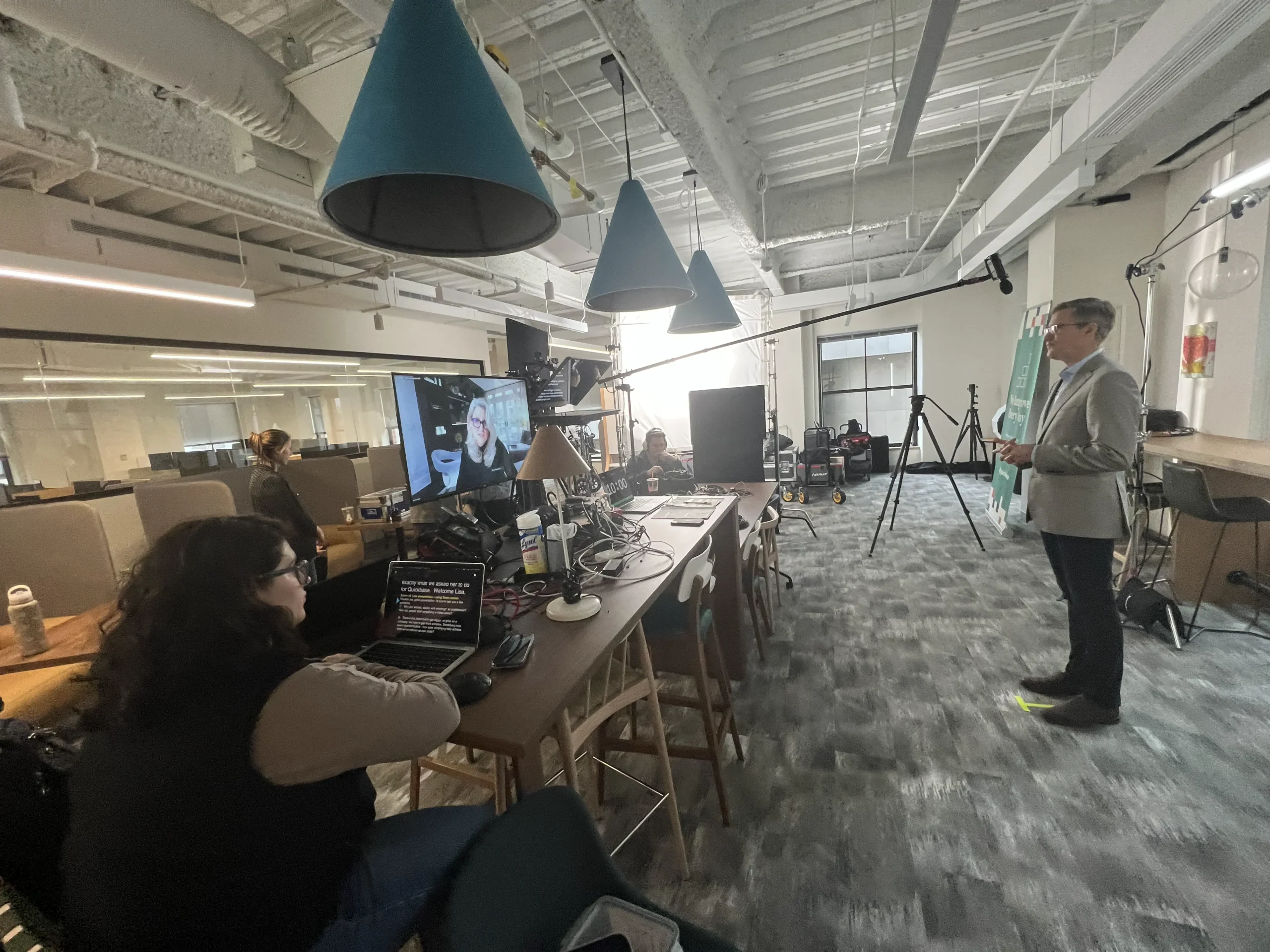 Some of the key goals for the 2023 kickoff were to engage and connect with their global workforce community and provide updates about the year to come, but do so without the use of any slide decks in the presentations. Instead of the standard “2-box” layout with a talking head next to a slide, we were happy to work with Quickbase to produce a diverse array of short-form videos with their executive leadership and staff, consisting of interviews, round table discussions, presentations with whiteboards and animations, and live trivia.