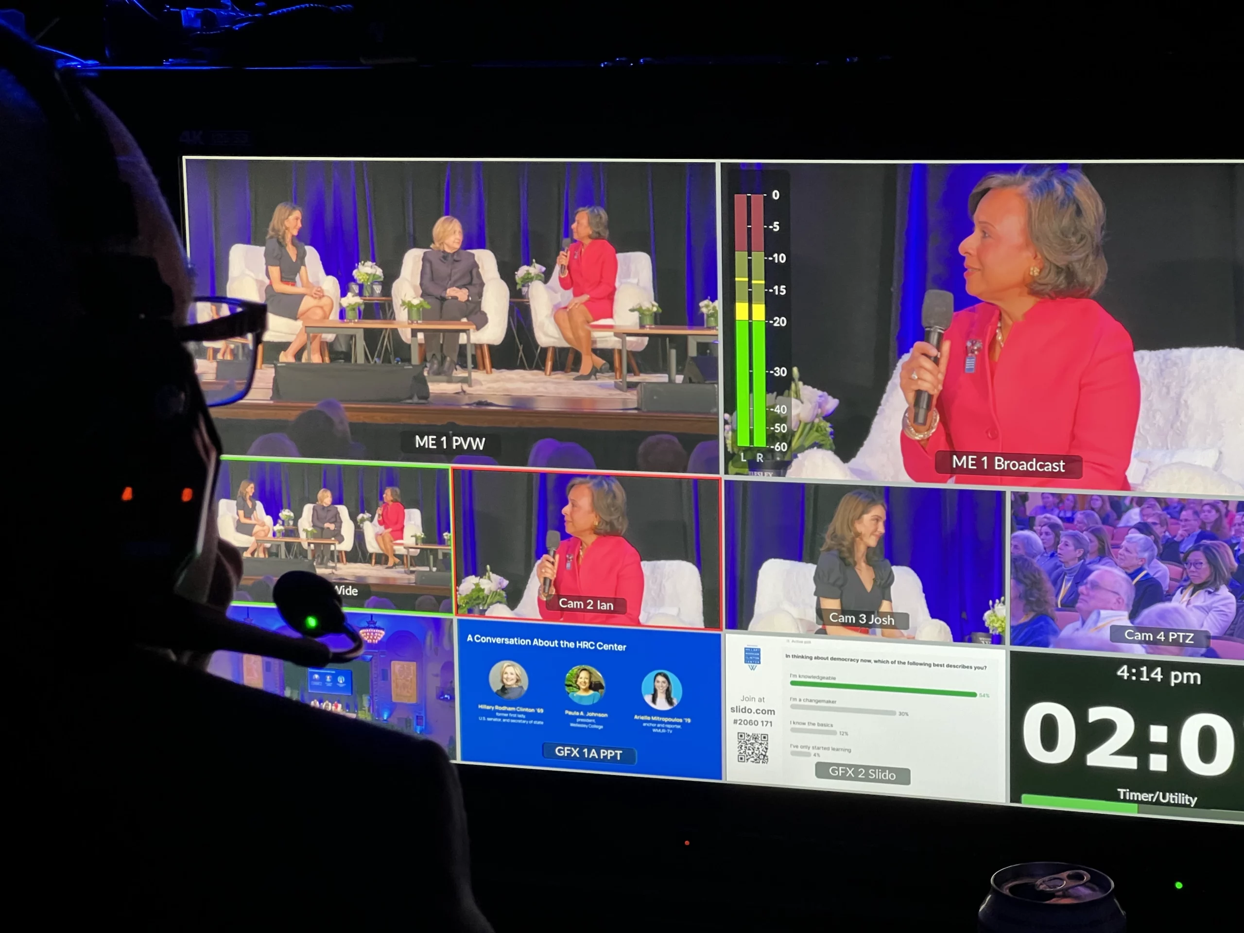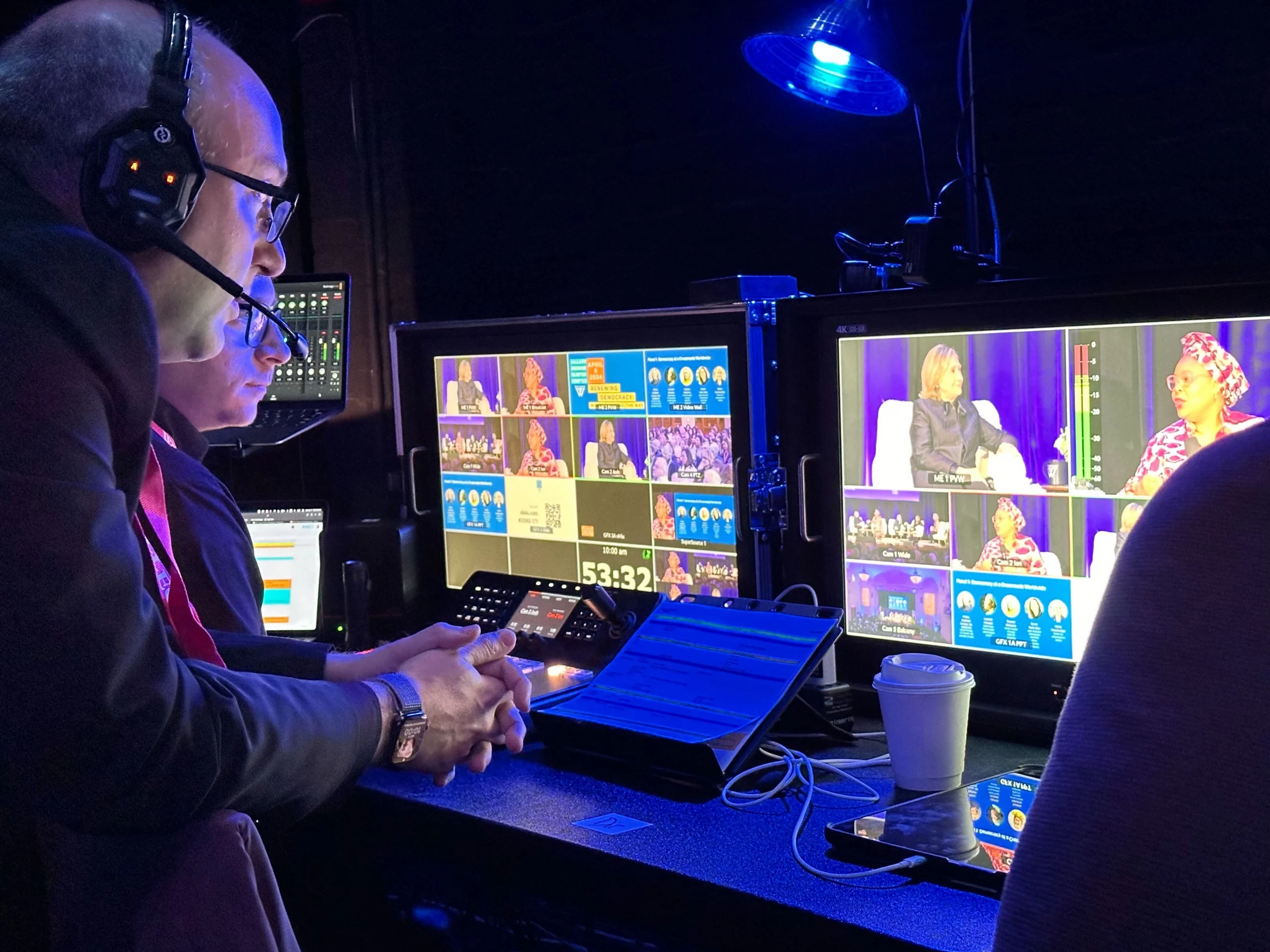 Our sound team and audio equipment ensured excellent sound reinforcement in the room and a dedicated broadcast mix for the remote audience. Five cameras captured the event, with shots of the stage, the entire theater, and live audience reactions.