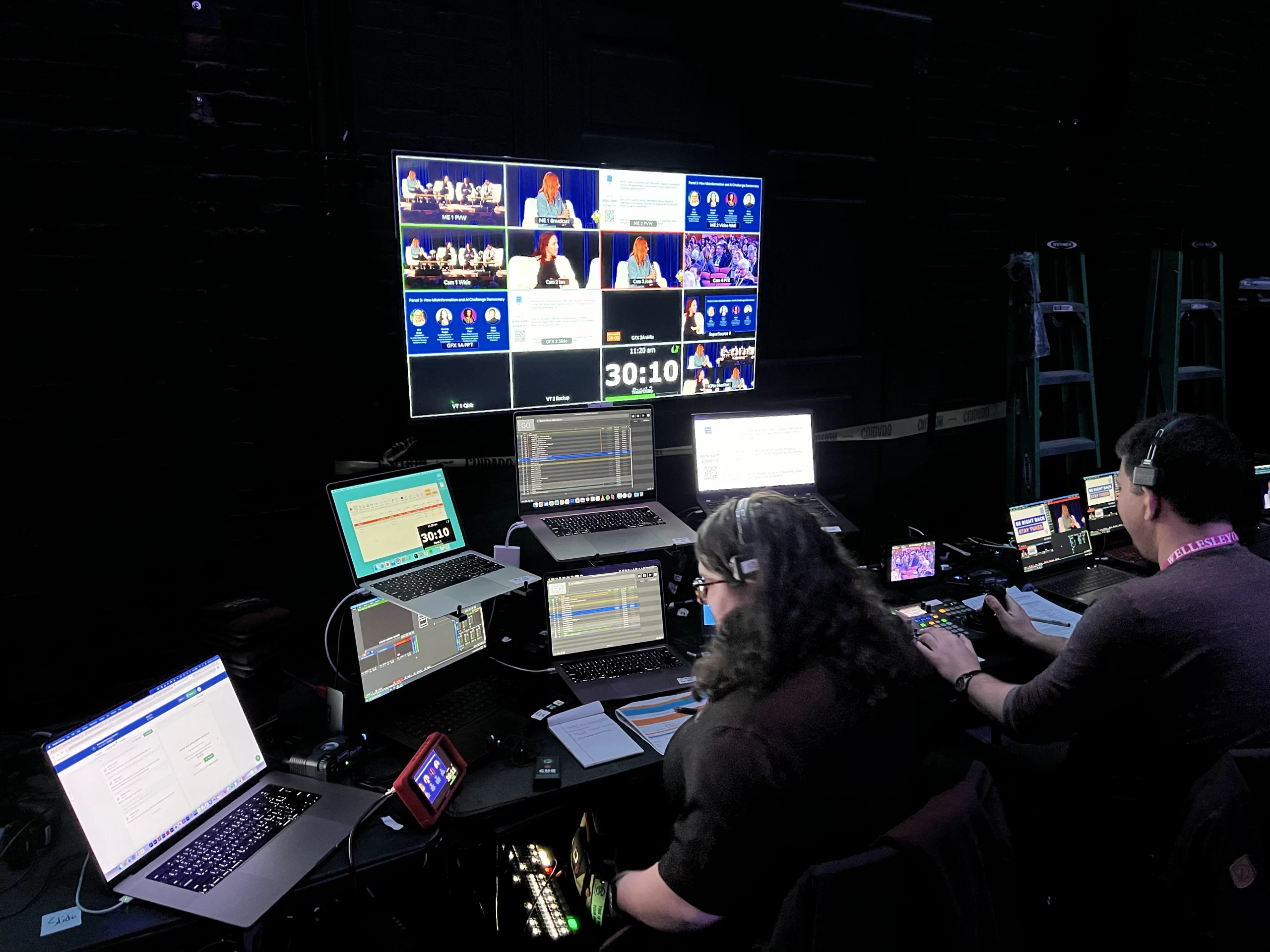 Our web team helped develop a website to market the event and facilitate virtual participation via live stream on the day of the summit. Our broadcast and event technology team designed the technical workflows and mapping to accommodate all the necessary equipment behind the stage and in the theater. Our backstage broadcast video control room included stations for multi-camera directing, graphics and playback, live polling, broadcast audio mixing, and streaming and monitoring the broadcast.