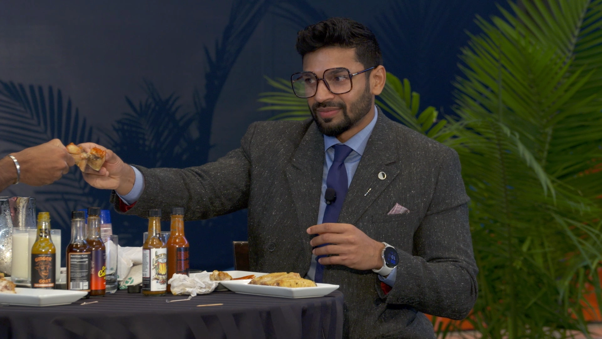 The show’s multiple segments included live music, an overview of upcoming events at the conference, revealed through several games amongst the hosts, and sit-down interviews with key providers. One segment, inspired by Hot Ones, involved one host interviewing a Product Specialist about new features while sampling spicy buffalo wings.