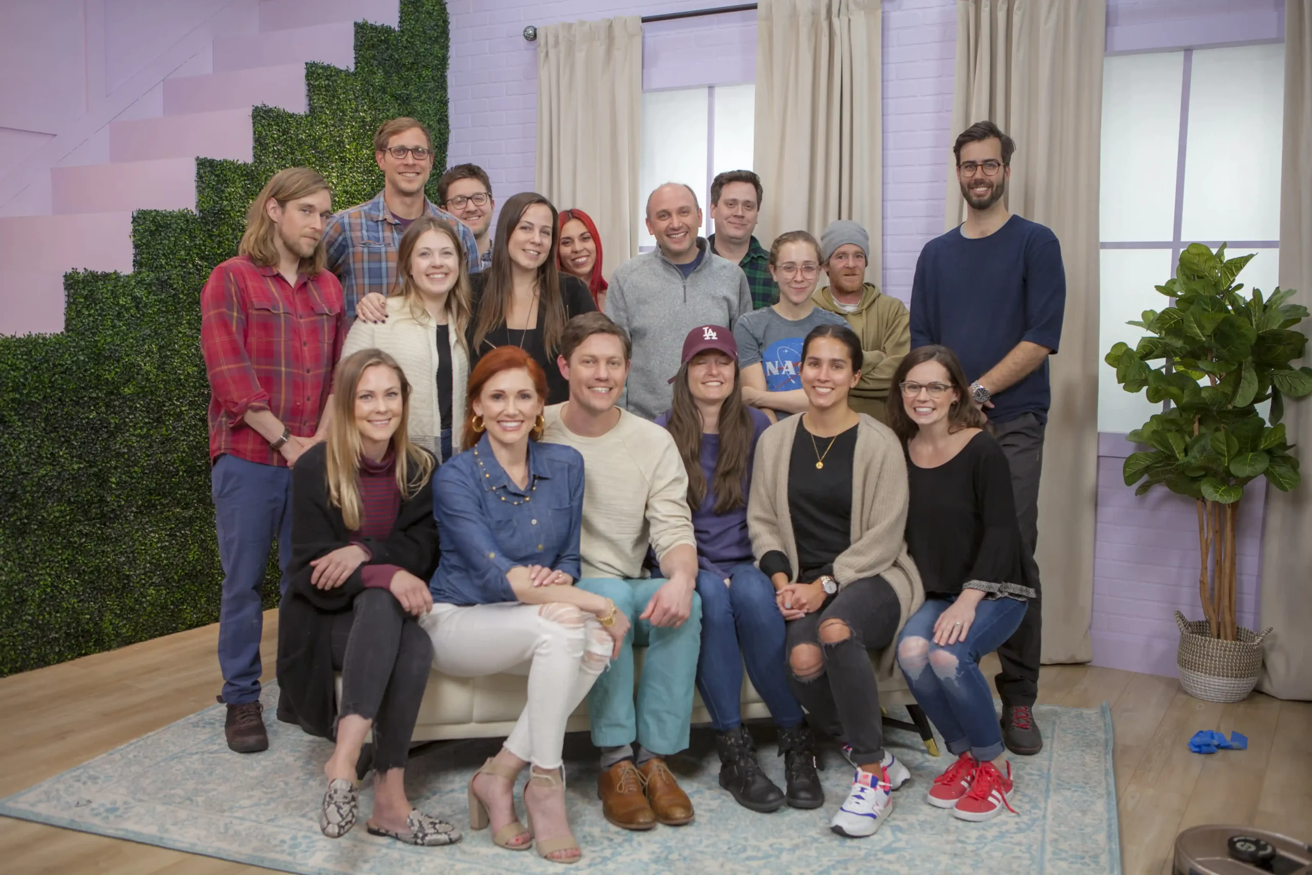 A Production Designer, Carpenters and Painters, Studio Manager, Director, Assistant Director, Producer, Editor, Director of Photography, Camera Operators, Multi-Camera Production, Audio Engineer, Art and Production PAs, and hundreds of products unboxed and built.
